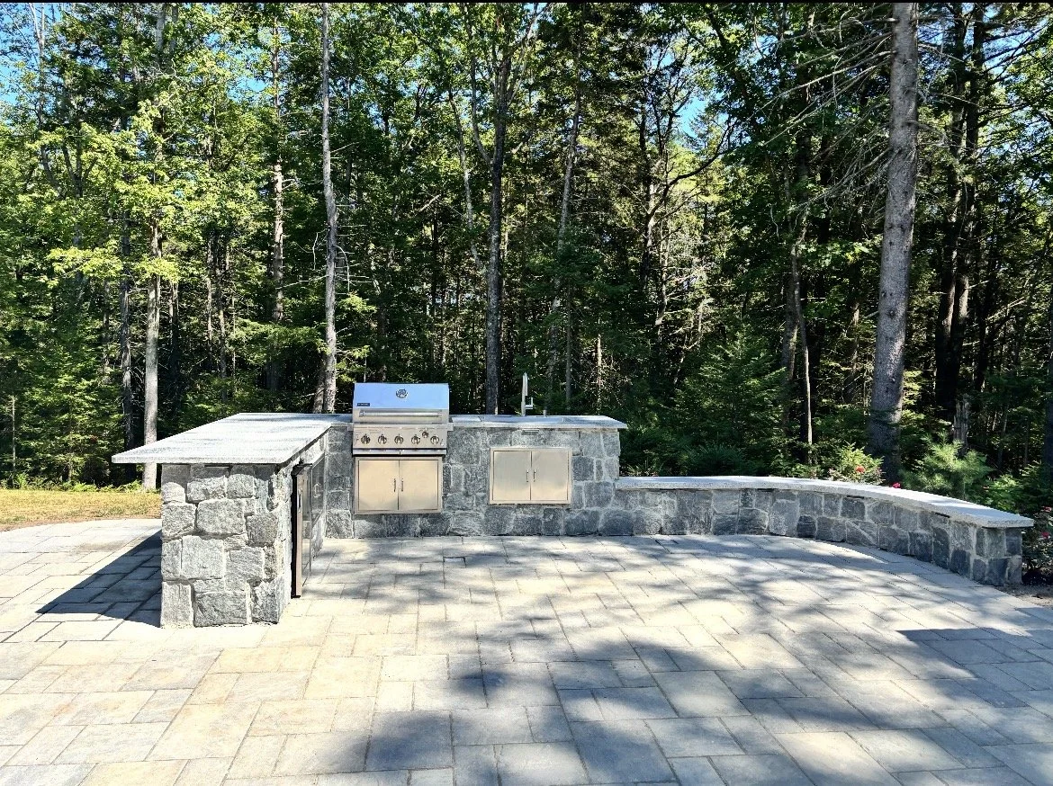 St. Pierre stone & Garden designs and builds custom outdoor kitchens for homeowners throughout Portland and Southern Maine. From built-in grills and stone islands to fully integrated cooking and entertaining spaces, we create outdoor kitchens that combine professional masonry craftsmanship with functional design. every build is constructed with materials suited for Maine’s climate and long-term performance.